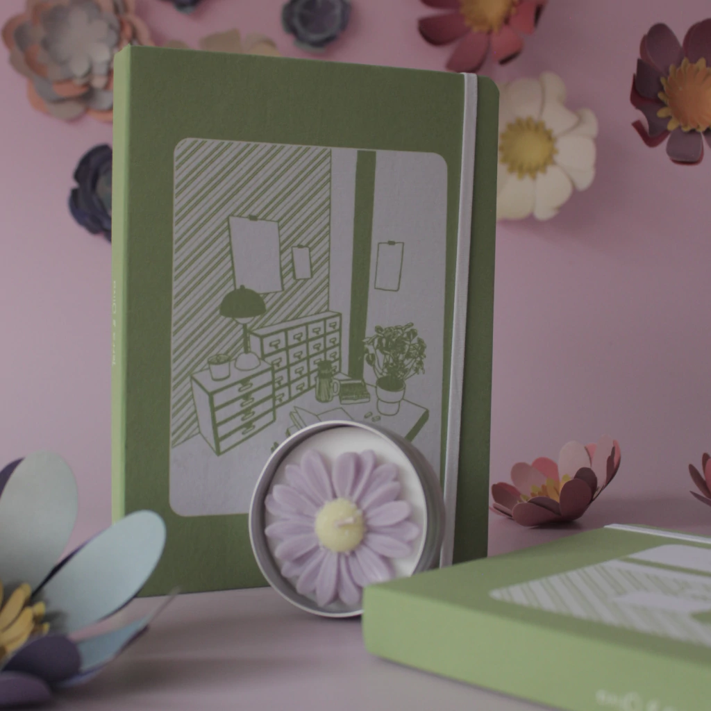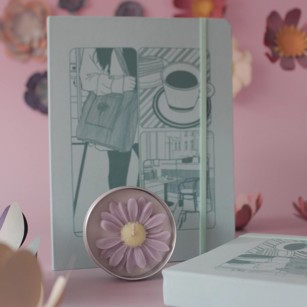 Lleva también una velita aromática de soya en forma de margarita que te ayudará a crear un ambiente inspirador para tus sesiones de escritura y reflexión.